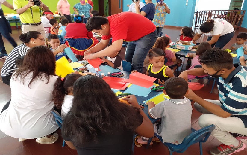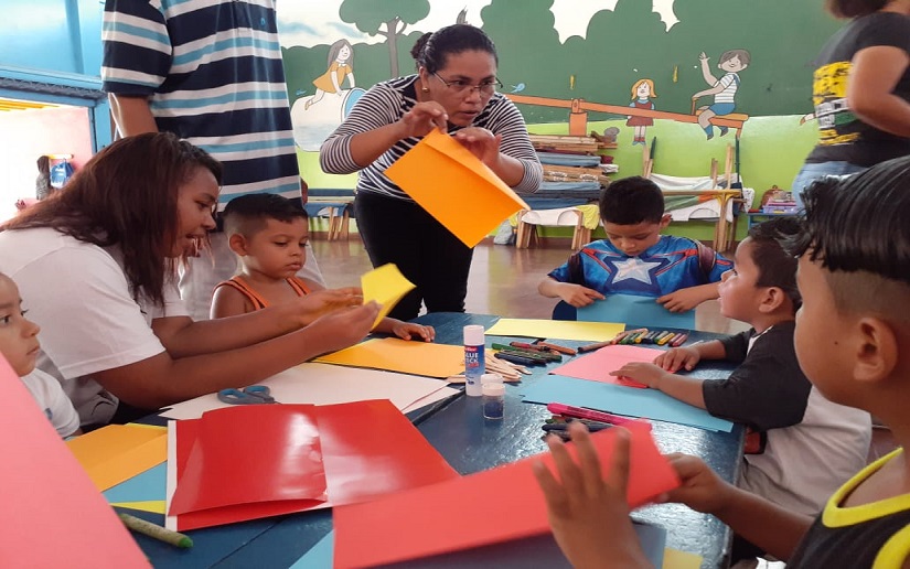 En saludo al Día del Maestro nicaragüense Promotoría Solidaria en coordinación con el Ministerio de la Familia, realizaron manualidades a base de material reciclable con niños y niñas del CDI “Mildred Abauza”, ubicado en el distrito Vll.