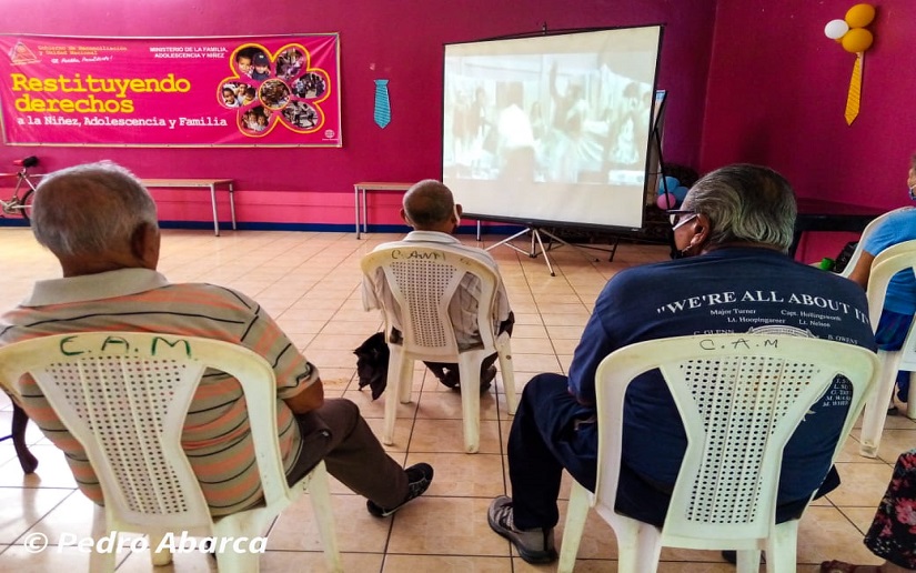 Recordando sus épocas de juventud y con sonrisas en el rostro, abuelitos de la Casa Club del Adulto Mayor, de la zona 8 de Ciudad Sandino, disfrutaron de la proyección de Películas Clásicas realizada por el Ministerio de Familia y Promotoría Solidaria.