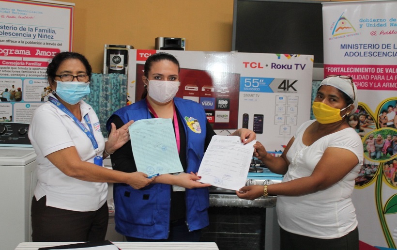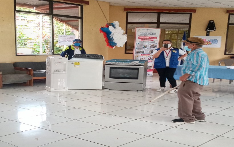 En saludo al 41 aniversario de la Revolución Popular Sandinista, el Ministerio de la Familia, realizó la entrega de electrodomésticos a dos Casa Club y cinco Hogares de Adultos Mayores, para la atención integral de las abuelas y abuelos protagonistas del Programa Amor.