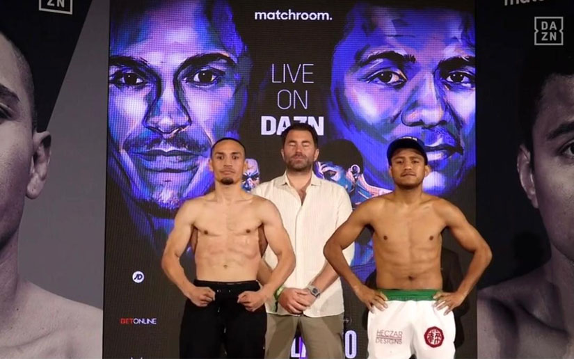Los púgiles vencieron a su primer rival, la báscula. El nicaragüense Campeón Mundial Supermosca (115 libras) de la Organización Mundial de Boxeo, marcó 114,8 libras, el mismo peso que el mexicano, monarca del Consejo Mundial de Boxeo (114,8 libras), de tal manera que ya todo quedó listo para el ansiado combate que acapara la atención del mundo del boxeo.
