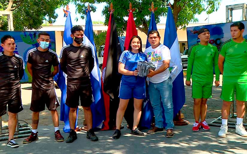 Recordó que además de los uniformes se entregan como parte de los materiales: balones, cancha, tarjeta, silbato, cronómetro, que es parte de la masificación del deporte de la estrategia nacional del Movimiento Deportivo Alexis Argüello.
