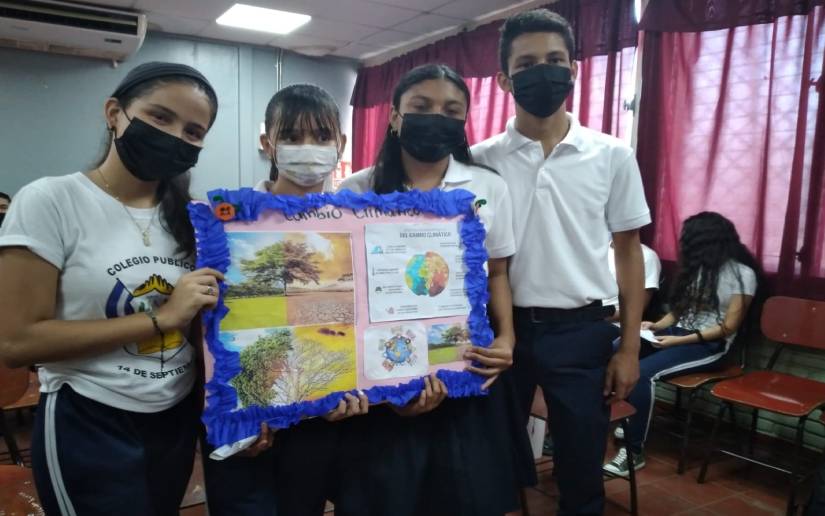 Estudiantes del colegio 14 de septiembre, del distrito cinco de Managua, recibieron una charla sobre el cambio climático promovida por el Movimiento Ambientalista Guardabarranco.