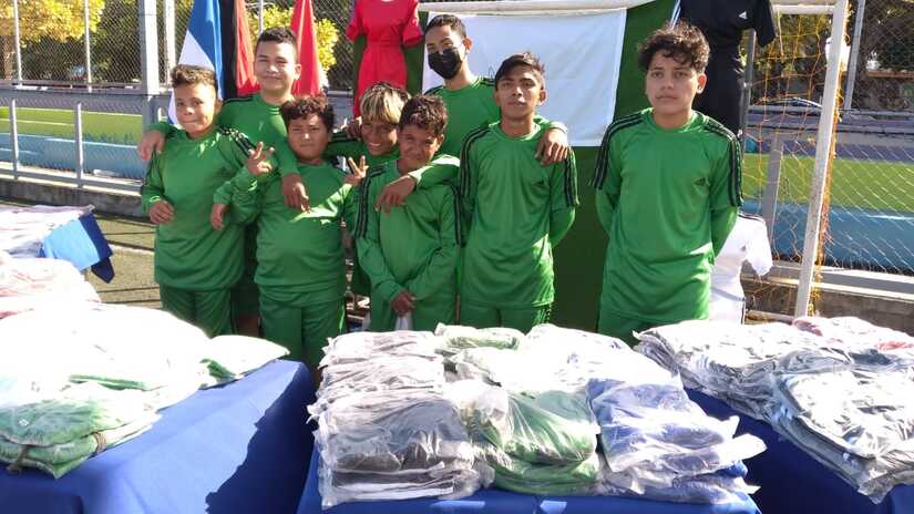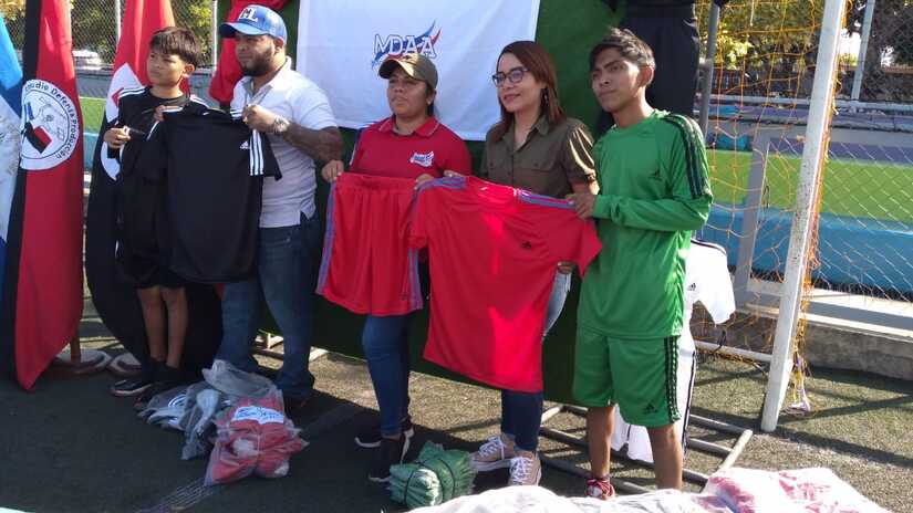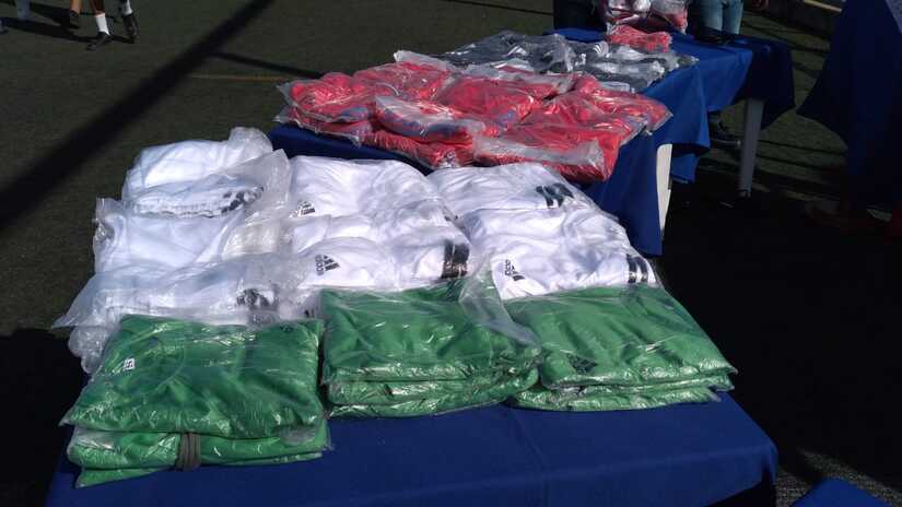 Gutiérrez mencionó que se entregaron uniformes de fútbol sala en diferentes colores; también realizan seis entregas de otros materiales deportivos en el año.