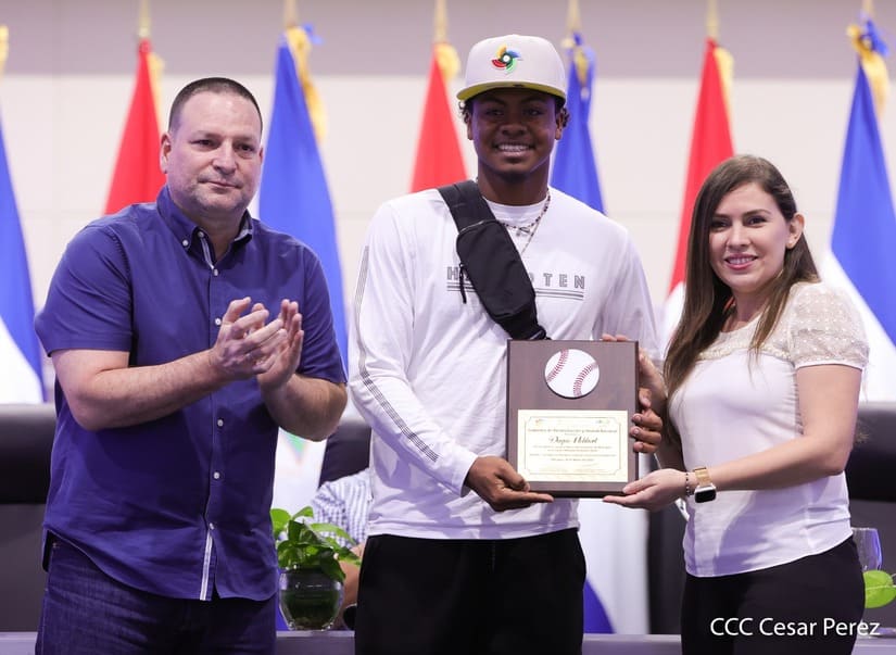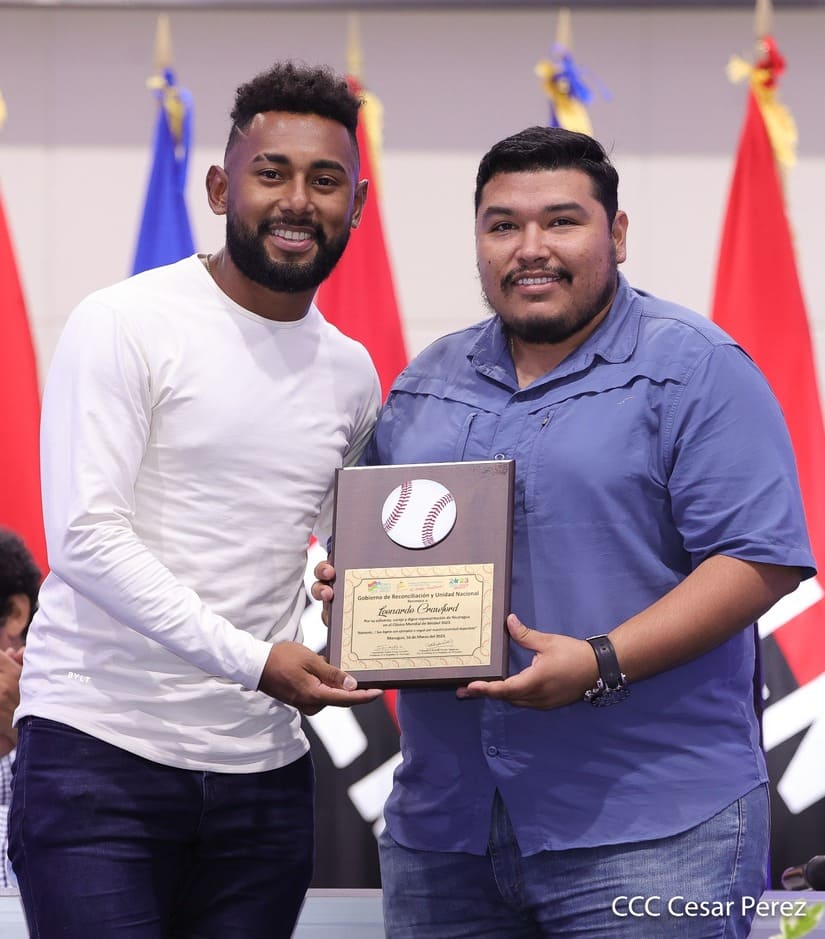 “¡Adelante…! Son ejemplo a seguir por nuestra juventud deportista”, se lee en la placa que se le entregó a cada uno de los miembros que conformaron la Selección Nacional de Béisbol que representó dignamente a Nicaragua, en el evento deportivo mundial.