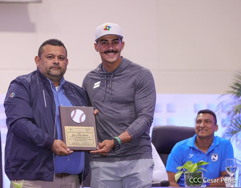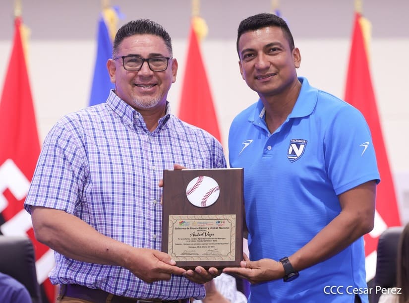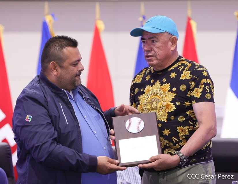 Los elogios a la Selección Nacional de Béisbol de Nicaragua, se hizo patente en una placa de reconocimiento que se le entregó a los peloteros, cuerpo técnico y otras personalidades que estuvieron al frente del equipo.