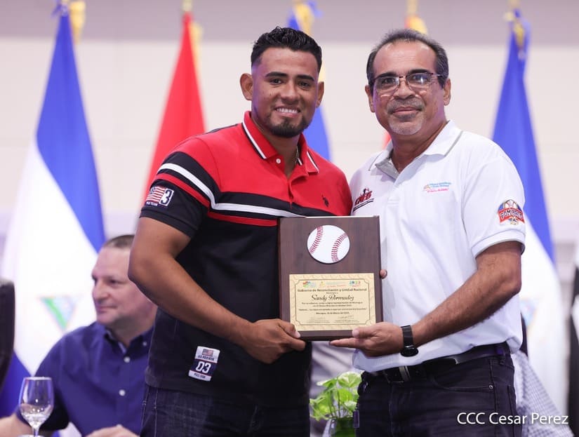 “A este pequeño pero significativo acto de reconocimiento. Trasladarles el saludo caluroso y afectivo de nuestro Presidente de la República (Comandante Daniel Ortega) y de nuestra Vicepresidenta de la República (Compañera Rosario Murillo), a todos y particularmente a los miembros de la Selección Nacional de Béisbol”, expresó.