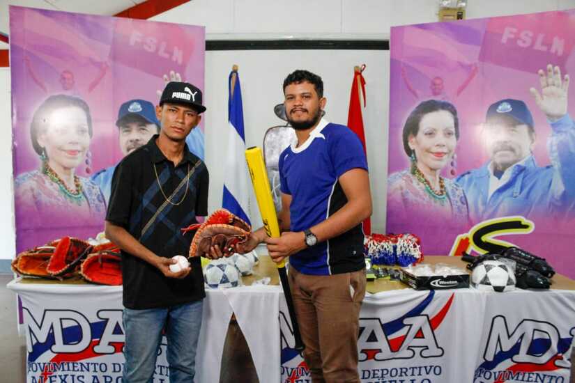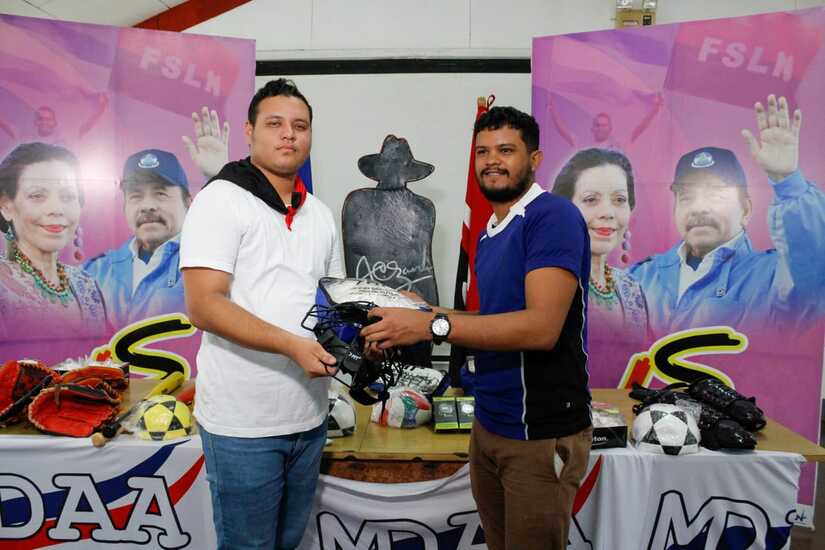 La entrega de los accesorios deportivos se llevó a cabo en el auditorio del distrito II de la alcaldía de Managua.
