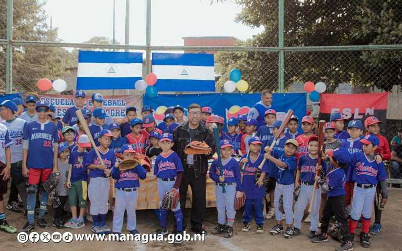 “La Alcaldía de Managua está trayendo bates, pelotas, guantes y todo lo necesario para seguir jugando, jugando y jugando béisbol en este campo que está muy bien cuidado y que justo es decirlo, esta academia también tiene mucho respaldo de los padres de familia”, expuso.