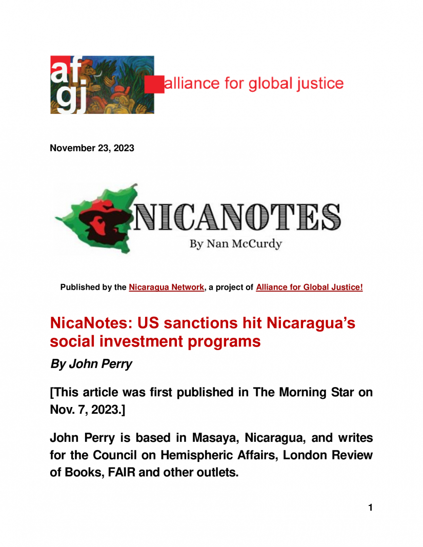 NicaNotes: US sanctions hit Nicaragua’s social investment programs