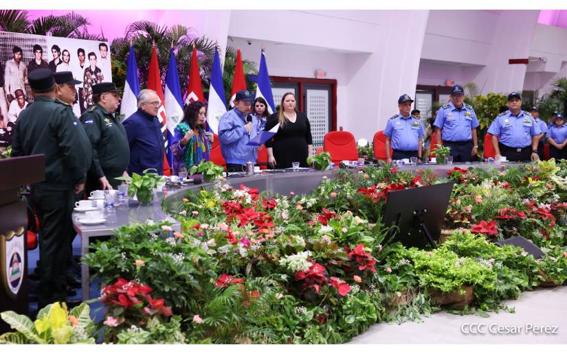 We thank you, Comandante Daniel and Compañera Rosario, for the unconditional support to the Ministry of the Interior, an integral part of the National Police. We reiterate our obedience and loyalty to our Supreme Leadership, and our willingness to continue working to strengthen the Peace, Security and Tranquility of Nicaragua's Families.