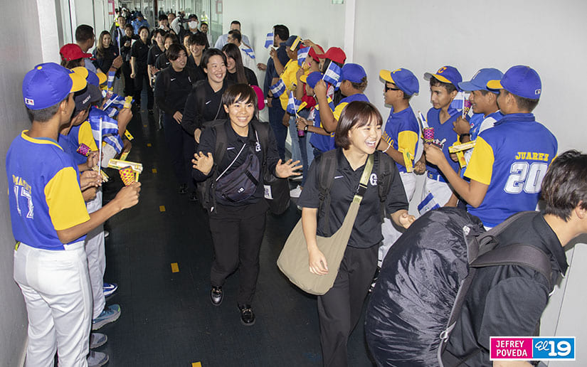 "Y queremos saludar de manera especial a 40 jugadoras de béisbol femenino que han llegado desde Japón para sostener encuentros amistosos con nuestros jugadores y con el Instituto Nicaragüense de Deportes", expresó.