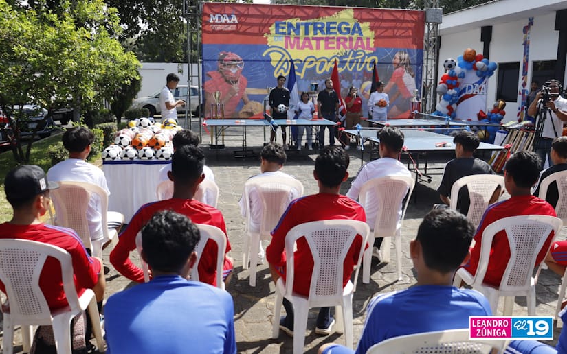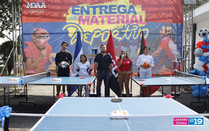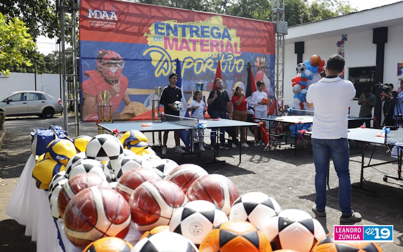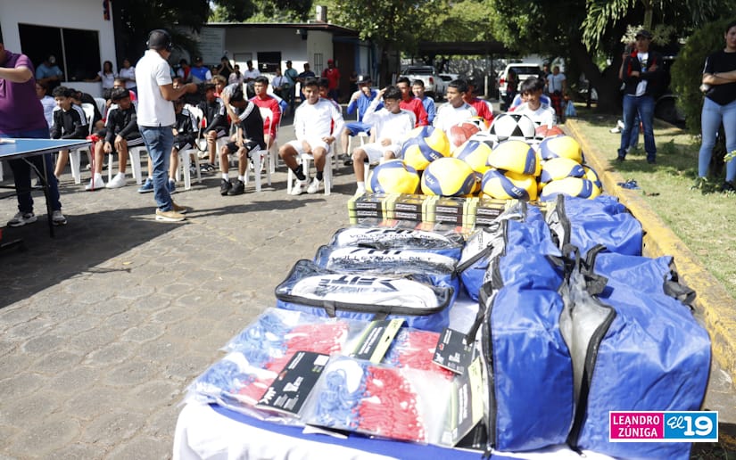 La entrega, realizada en el Ministerio de la Juventud, en Managua, consistió en kit de arbitraje, kit de béisbol, kit de softball, mesas de tenis, balones de fútbol sala, balones de voleibol, baloncesto y guantes de boxeo.