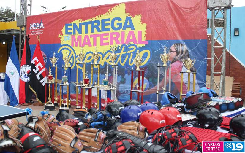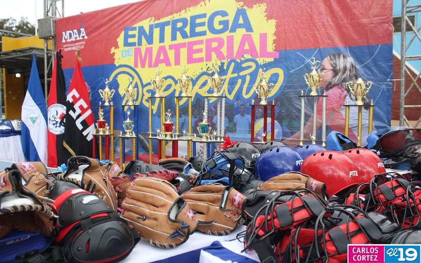 La entrega de materiales deportivos que aporta el Buen Gobierno Sandinista, a través de la JS19J y el MDAA, "son 8 millones de córdobas cada dos meses, estamos hablando de más de un millón 300 mil dólares al año; así es que llevamos varios años haciendo estas entregas deportivas que van dando resultados", informó Sequeira.