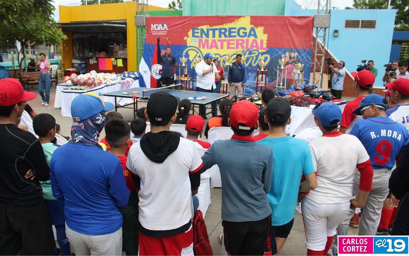 En el caso de la Academia de Béisbol que impulsa la Alcaldía de Managua y el Gobierno Sandinista, en la Colonia 14 de Septiembre, los niños, adolescentes y jóvenes reciben materiales deportivos como: guantes, pelotas, pecheras, bates, cascos, rodilleras, entre otros utillajes.