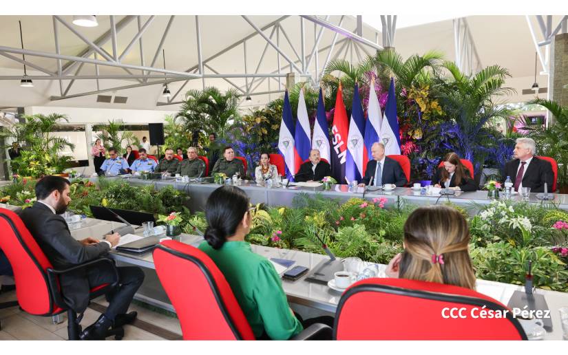 For Nicaragua, participating in this important meeting are the President of the Republic of Nicaragua, Comandante Daniel Ortega Saavedra; Compañera Vice President Rosario Murillo; our General Julio César Avilés, Head of the Nicaraguan Army; General Rodríguez, Chief of the General Staff of the Nicaraguan
