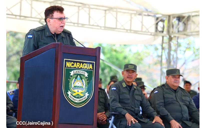 Igualmente agradecemos en nombre de todos los hombres y mujeres que integramos el Ejército de Nicaragua, las placas y reconocimientos que hoy nos fueron entregados y particularmente en nombre de los 3 mil Efectivos Militares que empleamos en la Seguridad y Protección de este Ciclo Productivo.