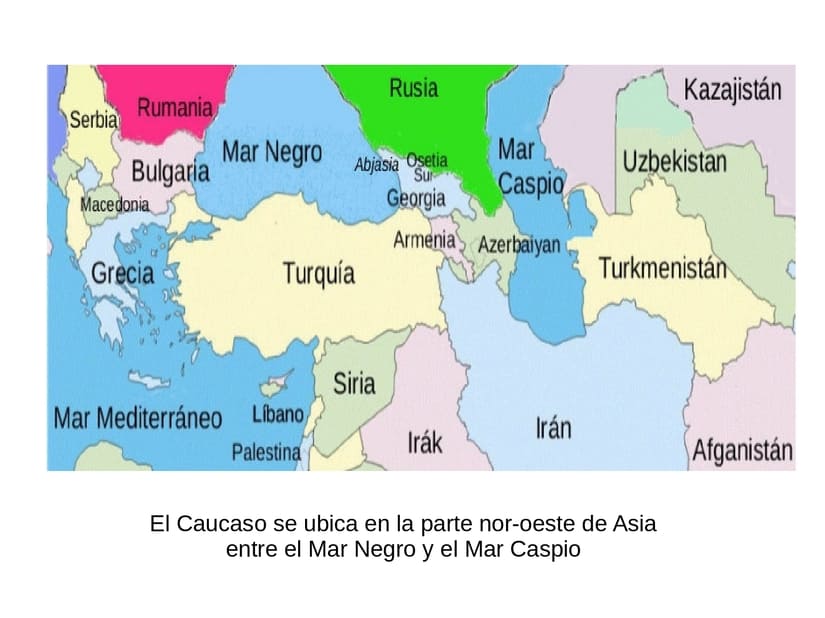 De manera parecida en que la ubicación geográfica entre dos océanos ha dictado el destino histórico de Nicaragua, la geografía de la montañosa región del Cáucaso en la parte nor-oeste de Asia entre el Mar Negro y el Mar Caspio también ha sido decisiva en su historia. Los países con territorio en la región del Cáucaso ahora son Abjazia, Armenia, Azerbaiyán, Georgia y Osetia Sur, aunque el Cáucaso también abarca parte del territorio de Rusia, Turquía e Irán. La población de la región está compuesta de más de cincuenta diferentes etnias que hablan distintos idiomas. En la parte norte y oeste de la región predomina la religión ortodoxa cristiana y en el este y sur predomina el Islám.