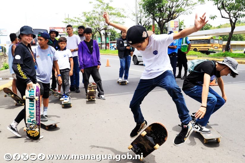 Agradeció que la Alcaldía de Managua tenga una Academia de Skateboarding, para que la niñez y juventud pueda aprender y practicar este bonito deporte, "ya que es muy bello, aunque sea un poco difícil, solo es cosa de practicar, para poder salir adelante y hacer trucos que se ven súper bien".