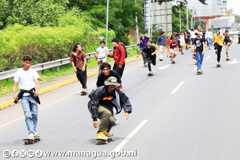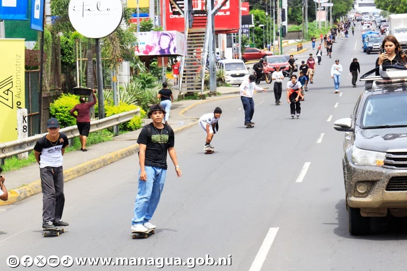 Con un recorrido, desde la tercera entrada de Las Colinas, Carretera a Masaya hasta el Parque Luis Alfonso Velásquez Flores, en Managua, se realizó la rodada de más de 100 protagonistas, en homenaje al Día Internacional del Skateboarding.