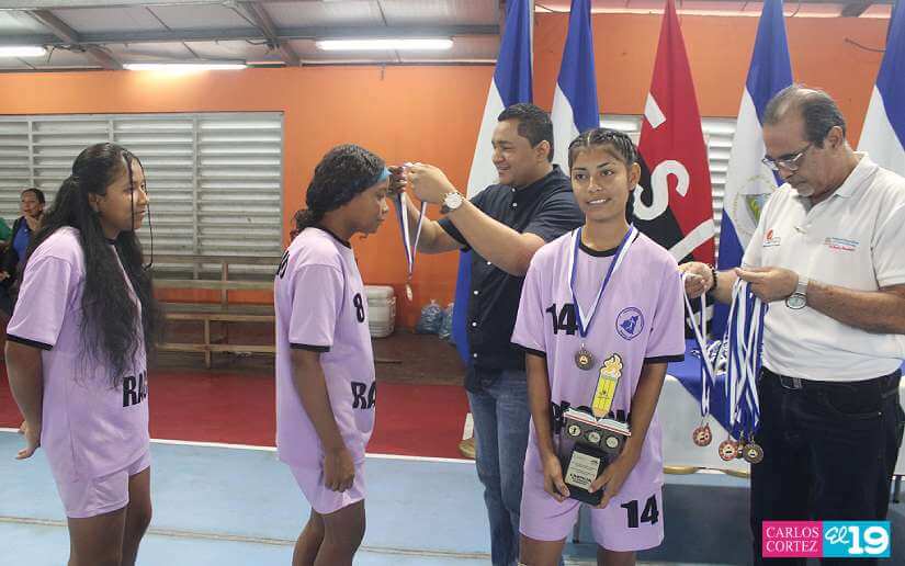 Como un reconocimiento al esfuerzo, disciplina y capacidad, el Ministerio de Educación (Mined), entregó medallas y trofeos a atletas femeninas de balonmano.