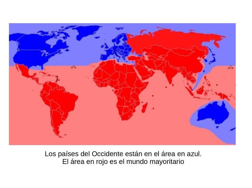 Generalmente, se ocupa el término Occidente para incluir a Estados Unidos, sus aliados subalternos de la OTAN entre Canadá y los países de la Unión Europea y sus estados vasallos en el Pacífico, Japón, Corea del Sur, Australia y Nueva Zelanda y otros países cooptadas de manera eventual como, en este momento, Filipinas. Muchas veces obviado, pero sin embargo integral a la identidad occidental desde 1948, ha sido el estado sionista de Israel, que, en efecto, ha cooptado moral y políticamente a los gobiernos norteamericanas y europeas. Israel es la máxima expresión de la abominable genocida criminalidad occidental, con el apoyo incondicional de Estados Unidos, la cual queda a la vista de todo el mundo ahora en Gaza.