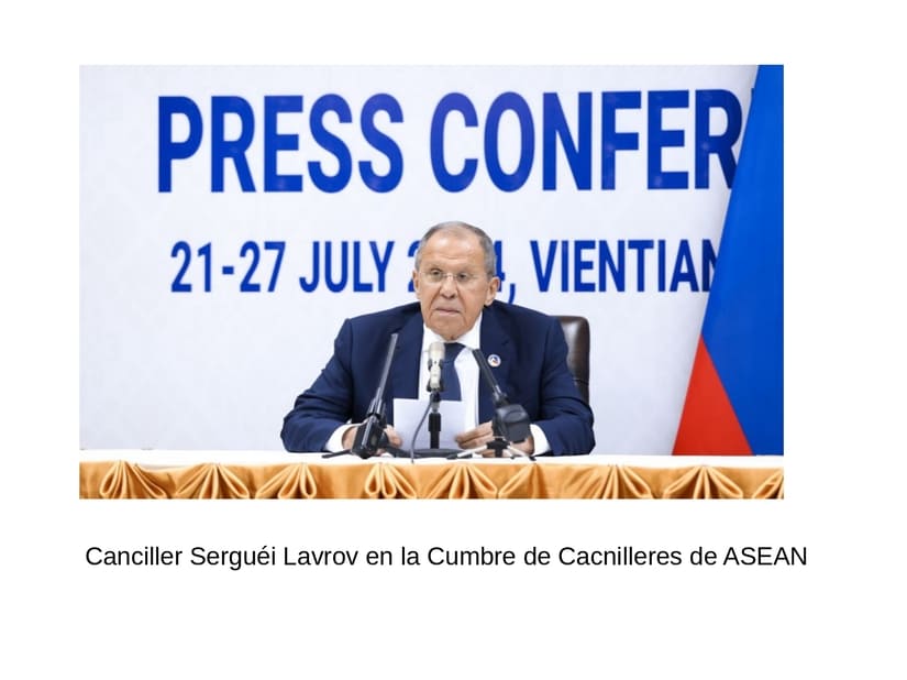 En una conferencia de prensa al fin de la reciente cumbre de las y los cancilleres de la ASEAN en la República Popular Democrático Lao, el canciller ruso, el hermano Serguéi Lavrov, opinó que “El Occidente actual no está preparado y no quiere escuchar ni oír. No está preparado ni es capaz de negociar... La diplomacia en Occidente, como medio de interacción entre Estados, ha dado paso a ultimátums, exigencias y castigos a los desobedientes mediante sanciones ilegítimas y unilaterales... No ocultan que se trata de preservar el dominio mundial, que se les está escapando cada vez más claramente, aunque no lo quieren perder porque permitía, y permite aún ahora, de muchas maneras vivir a expensas de los demás mediante métodos neocoloniales de coerción.”