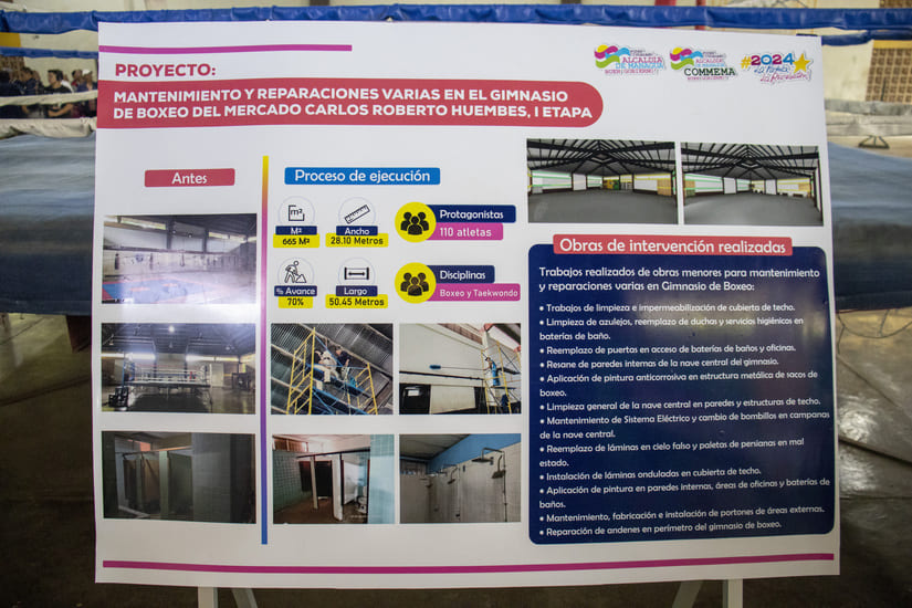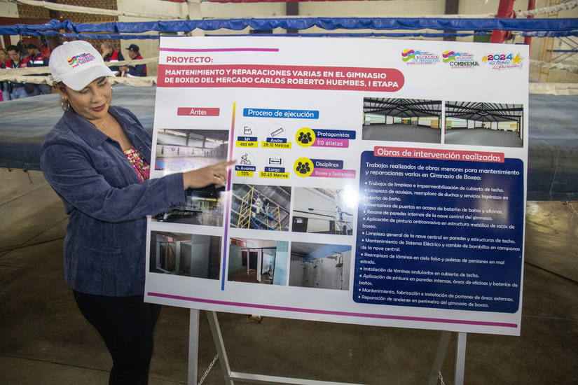 “Y además atender a todos los deportistas, más de 300 deportistas aquí en ese gimnasio. Muchachos que practican boxeo y taekwondo. Así que el compromiso de nuestro Buen Gobierno a través de nuestra Alcaldía y a través de la dirección de deporte y COMMEMA estamos uniendo esfuerzos para remozar este lugar, que es histórico realmente, donde miles de jóvenes han practicado deporte, pero que no tenían esas condiciones. Sin embargo, nuestro Buen Gobierno pone en primer lugar lo que es esa práctica del deporte en todas sus disciplinas, cuerpo sano, mente sana y el compromiso como Alcaldía es unir esfuerzos con nuestro Gobierno central para que la juventud tenga opciones a practicar el deporte que a ellos les guste y les apasiona”, dijo.