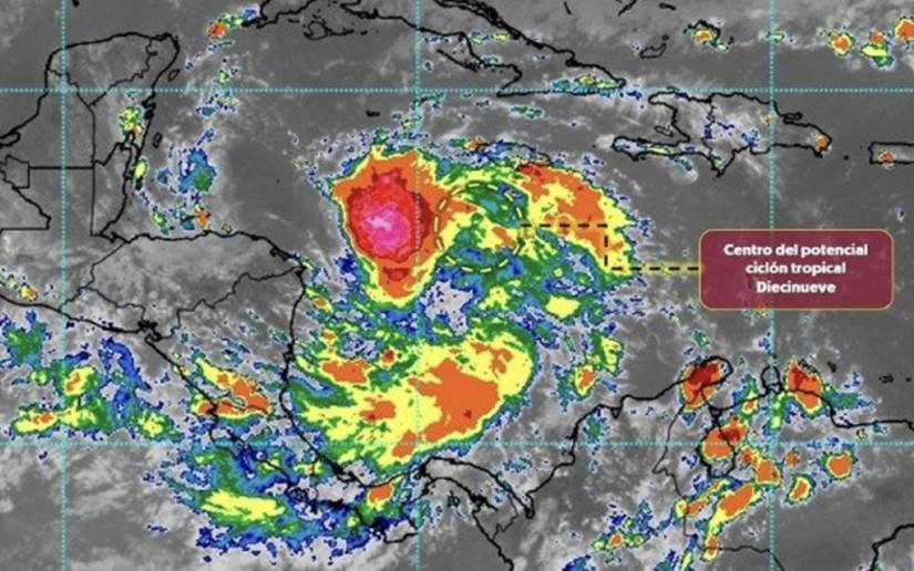 En la noche de este miércoles se formó un potencial ciclón tropical en el mar Caribe, el número 19 en la actual temporada ciclónica en el océano Atlántico, informa el Servicio Meteorológico Nacional de México (SMN).