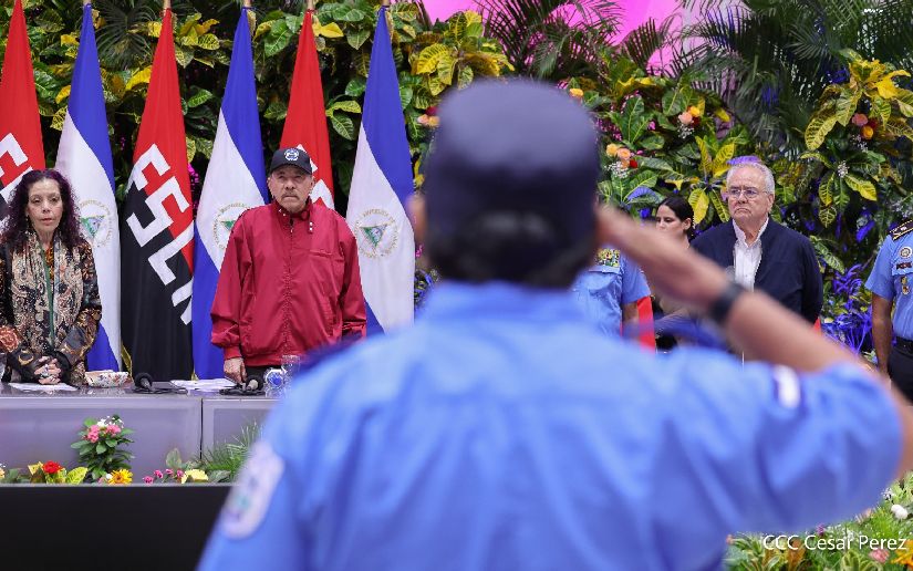 Well then, Nicaraguan Brothers and Sisters, Nicaraguan families, on your behalf we are going to take the Legal Oath of Commissioner General Mauricio Lenin Sosa Robelo, Commissioner General Esteban Antonio Torres Rocha, Commissioner General Álvaro José Pérez Marenco, and Commissioner General Oscar José Alemán Marques. And our congratulations to their families, our embrace.