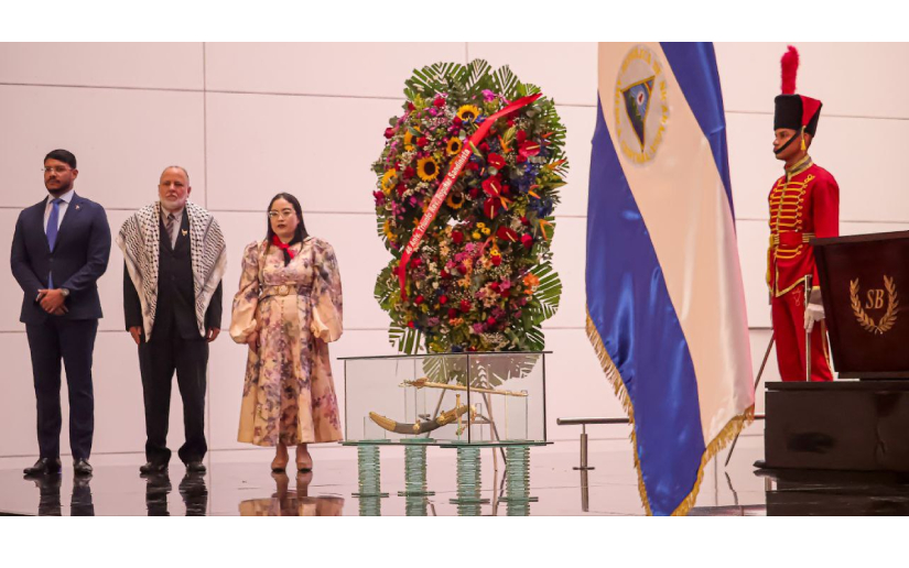 La Embajada de Nicaragua acreditada en Venezuela conmemoró, este viernes, con una ofrenda floral ante el sarcófago que guarda los restos mortales del Libertador Simón Bolívar, en el Panteón Nacional, el 46° aniversario del Triunfo de la Revolución Popular Sandinista.