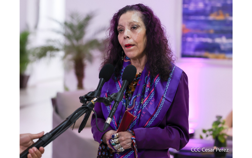 Y despedimos a la Delegación de nuestra Nicaragua Bendita, que parte hacia la República Popular China para participar en distintos eventos y particularmente en un Foro Global, o sea, Mundial, de Mujeres Protagonistas de los avances en la Vida.