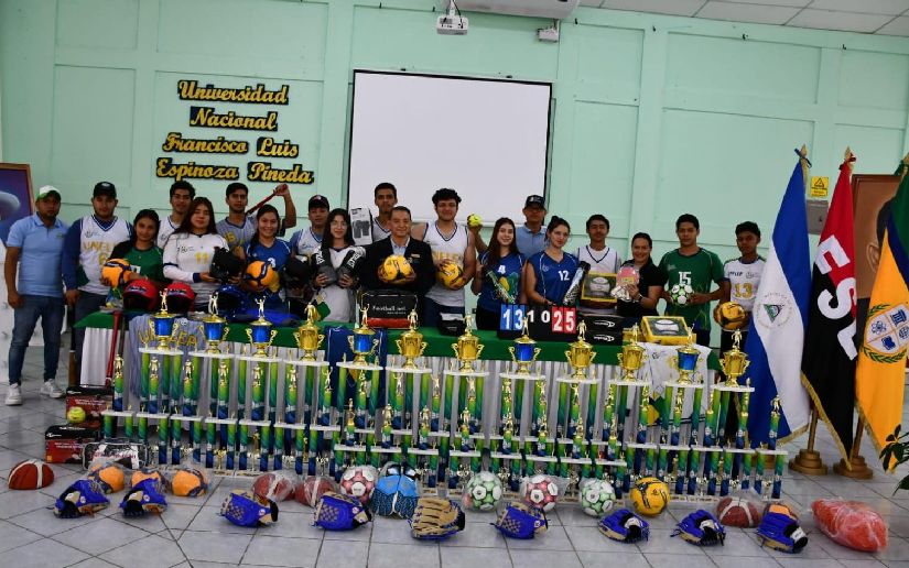 La Unión Nacional de Estudiantes de Nicaragua en la Universidad Nacional Francisco Luis Espinoza Pineda, este 13 de Octubre entregó equipamiento deportivo en las disciplinas de boxeo, ajedrez, fútbol, voleibol, softbol, béisbol y baloncesto.
