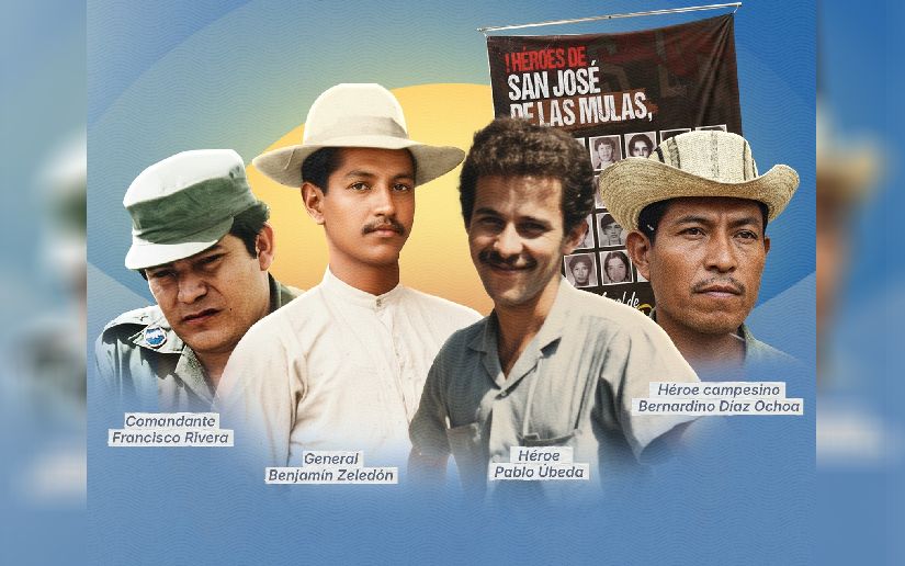 "Héroes de San José de las Mulas, Bernardino Díaz Ochoa. Todos estos son Héroes de las luchas valientes y gloriosas del pueblo nicaragüense. También Pablo Úbeda, legendario Héroe. Benjamín Zeledón, ¿quién no sabe quién es el glorioso Benjamín Zeledón? General que inspiró a nuestro General de Hombres y Mujeres Libres, Augusto Sandino. Francisco Rivera 'El Zorro' en Estelí, Benjamín Zeledón en Jinotega, Pablo Úbeda en Juigalpa, Modesto Duarte en Camoapa", indicó.