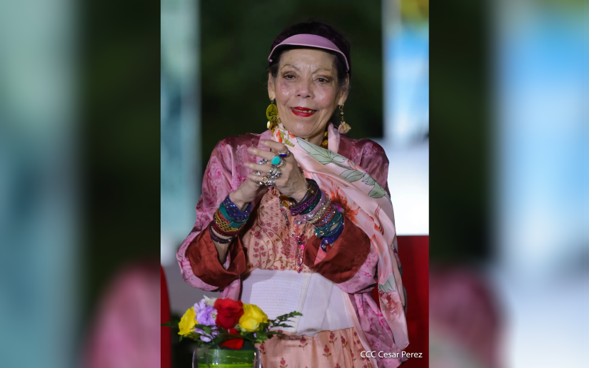 Orgullosos, alegres, de este día cuando celebramos la Patria en Paz, la Paz que hace la Patria cada vez más Fuerte, y en este Acto en el que rendimos Homenaje al Cardenal Miguel como Pastor de la Reconciliación y la Paz, que nos dio la Bandera de la Reconciliación en aquellos días, caminando, recorriendo Nicaragua, buscando, propiciando, trabajando por la Paz, en Reconciliación.