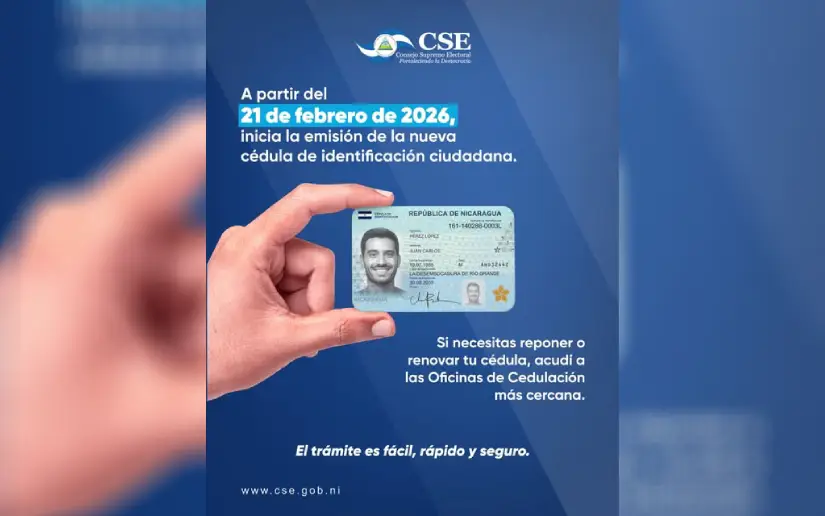 El Consejo Supremo Electoral informa que, a partir del 21 de febrero de 2026, entrará en vigencia el nuevo formato de Cédula de Identificación Ciudadana, incorporando nuevas tecnologías para fortalecer la seguridad y la protección de los datos personales.