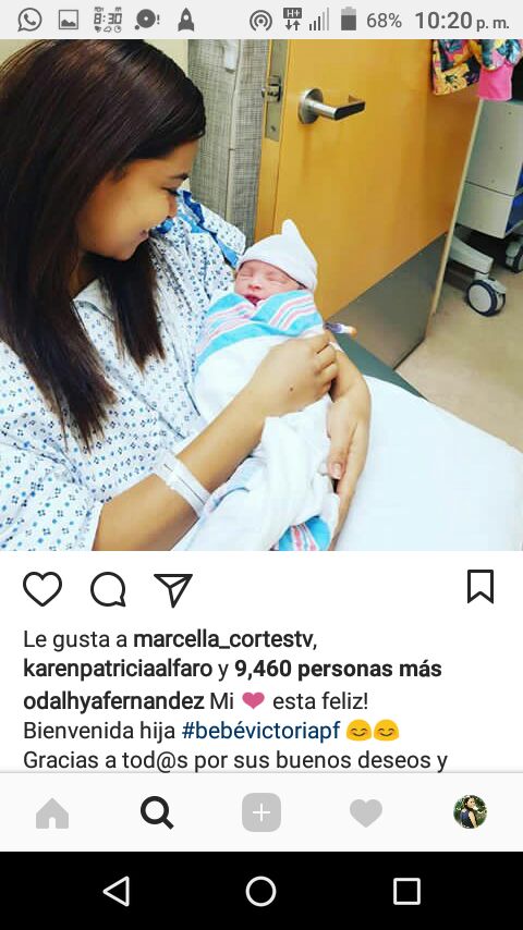 La presentadora de televisión Odalhya Fernández compartió con sus seguidores una foto donde aparecía con el nuevo miembro de la familia, y en la cual escribió: " Mi corazón está feliz! Bienvenida hija #bebevictoriapf gracias a todos por sus buenos deseos y oraciones. Diosito estuvo con nosotr@s en todo momento".