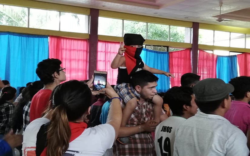 Contagiados con el espíritu revolucionario, los jóvenes bailaron y cantaron las músicas que representan la lucha y heroísmo de Nicaragua.