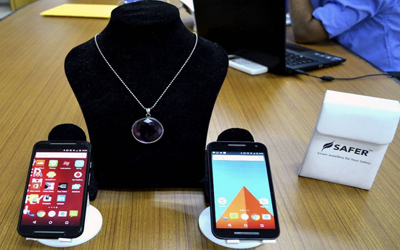El proyecto es ideado por cinco jóvenes ingenieros indios, que han empezado a venderlo en línea, SAFER consta de un sistema oculto en la parte posterior de una gema que manda un aviso de peligro a través de una aplicación para teléfonos inteligentes.