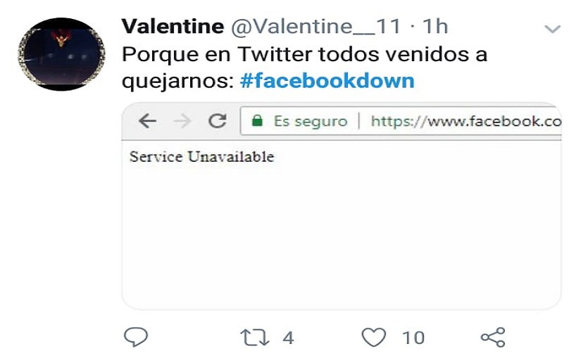 Una actualización de Facebook dice que no funciona por el mantenimiento, otros usuarios ven un mensaje en su cuenta que dice: “no está disponible debido a un problema de sitio”.