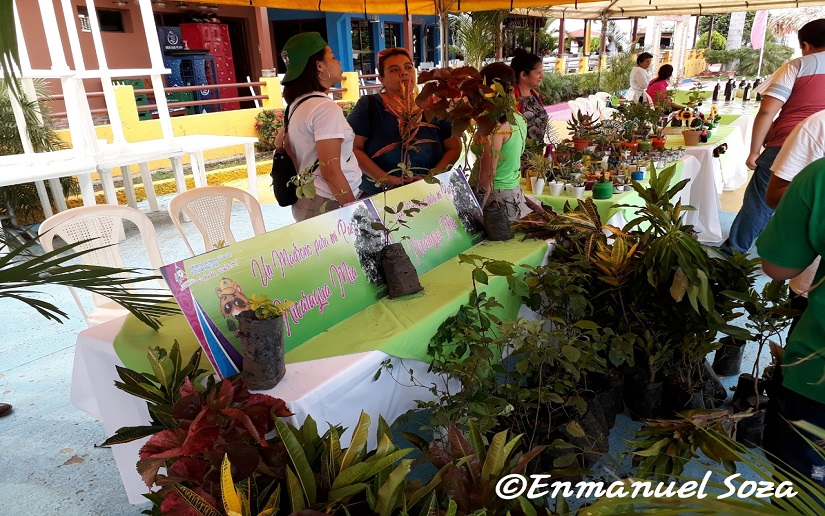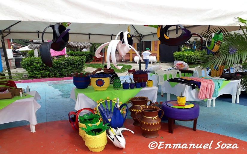 En el lugar se ofrecieron productos a base de materiales reciclables, “tenemos diversas figuras elaboradas a base de papel reciclado, jóvenes y mujeres emprendedoras que también reciclan todos los desechos de tela, elaborando con estos manteles, almohadas y también se han citado jóvenes que reciclan llantas para elaborar maceteras”, expreso Darling Hernández, coordinadora nacional del Movimiento Ambientalista Guardabarranco.