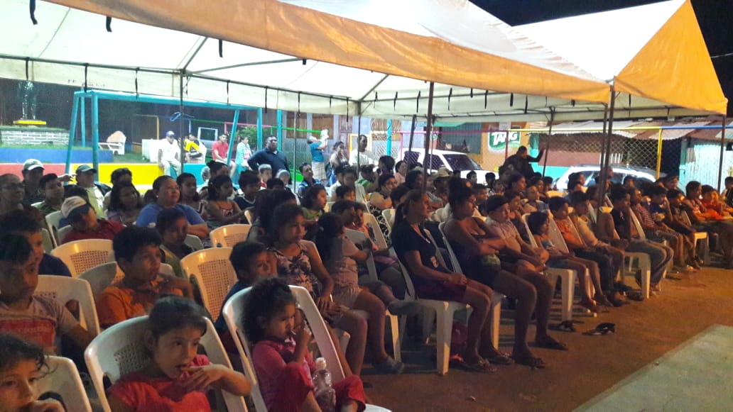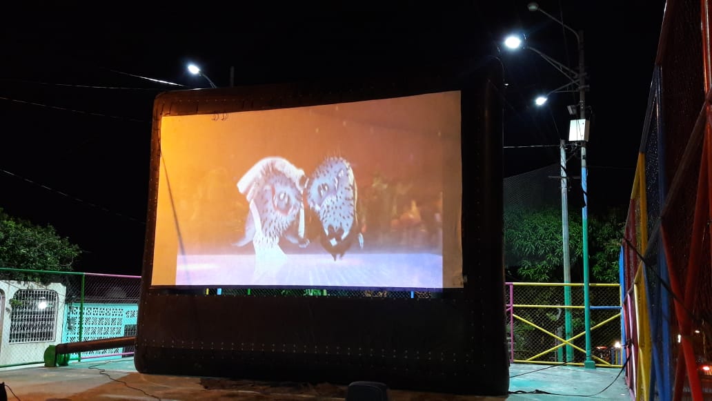 Esta actividad consistía en la proyección de películas infantiles en pantalla gigante, al aire libre en diferente parques, que el gobierno del frente sandinista a construido y rehabilitado para el disfrute de las familias y en especial de los consentidos del hogar.