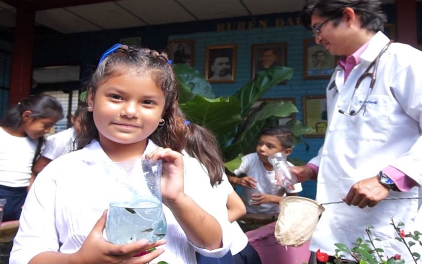 “Es una estrategia más para enfrentar la epidemia del dengue, la intención es que los niños y adolescentes capturen larvas en sus hogares y los traigan en los centros escolares para alimentar a los peces, de los acuarios escolares que ya están habilitados”, explicó el Dr. Erick Dávila, director del Centro de Salud de Masatepe.