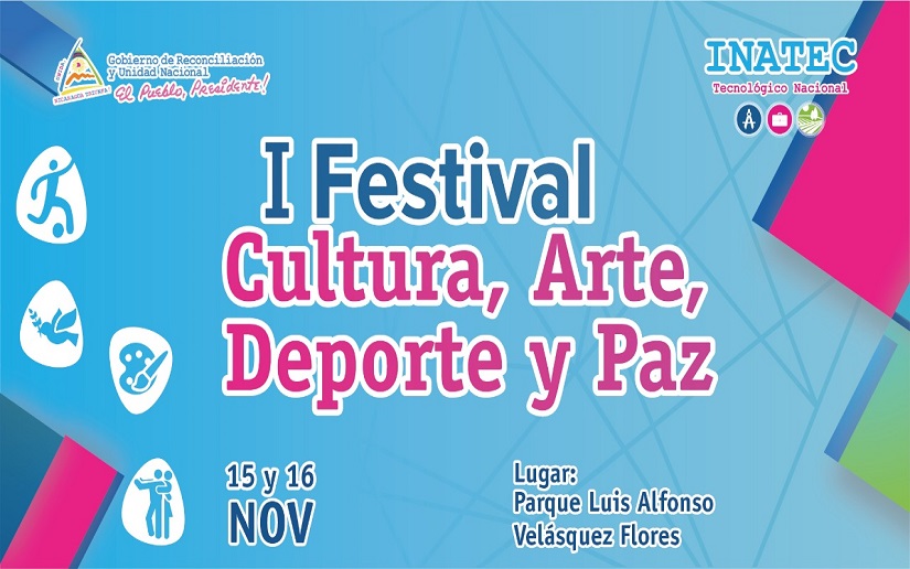 Con el objetivo de promover las carreras técnicas en los 44 centros tecnológicos, el Instituto Tecnológico Nacional (INATEC), realizará el Primer Festival, Cultura, Arte, Deporte y Paz, en los días 15 y 16 de Noviembre, en el Parque Luis Alfonso Velásquez Flores.