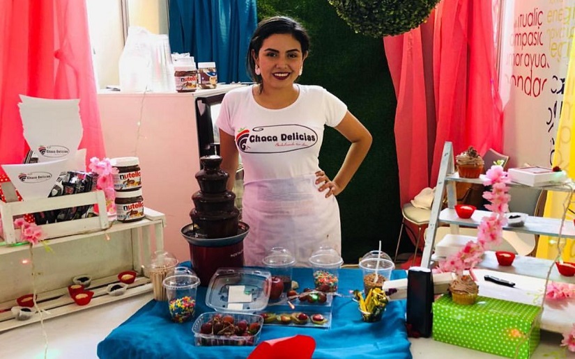 "Choco delicias inicia de un antojo, que se convirtió en mi pequeño emprendimiento, cuando inicie lo hice con una cocinita eléctrica y con dos pailitas, con una batidora de mano, pero sobre todo con muchas ganas de trabajar”.