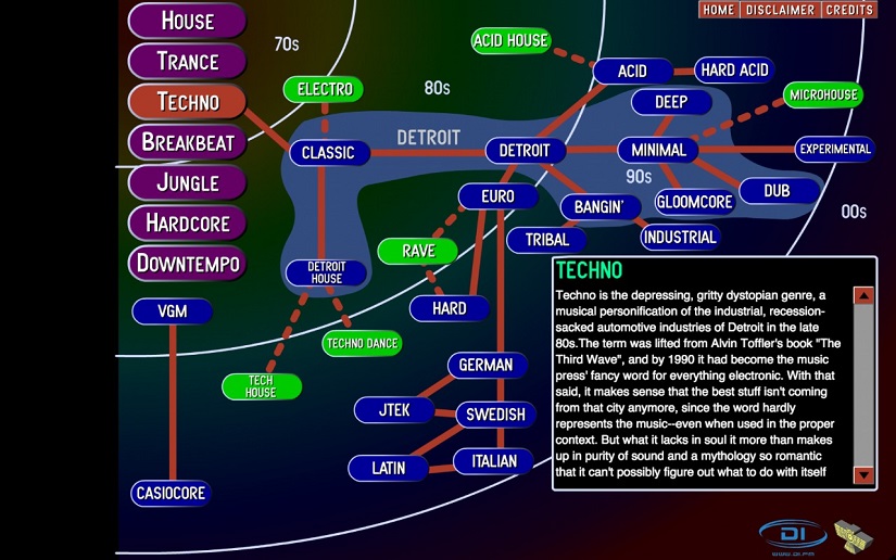 El Techno nace en Detroit, Estados Unidos, este género nace basado en el uso experimental de los sintetizadores, con influencia del funk, free jazz. A esto se le añade la temática del corte futurista y de ciencia ficción. Muchas veces se confunde en Techno con el Trance o Dance.