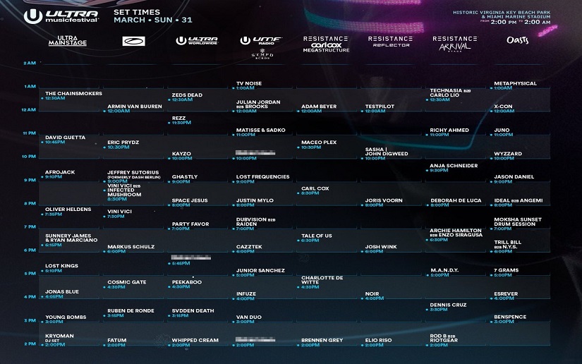 Algunos Djs, que estarán en el Miami Marine Stadium, son Tiësto Alesso, Zedd, Armin Van Buuren, David Guetta, The Chainsmokers, Deadmau5, por mencionar algunos.