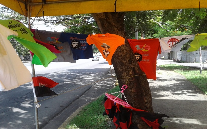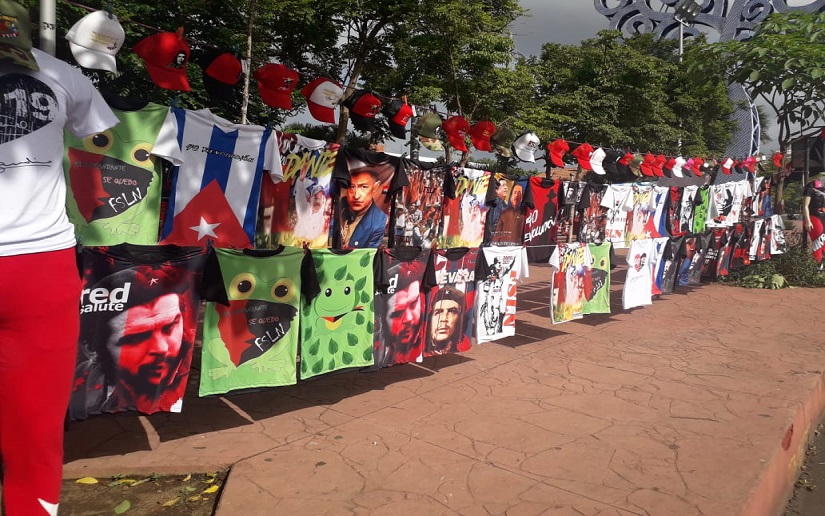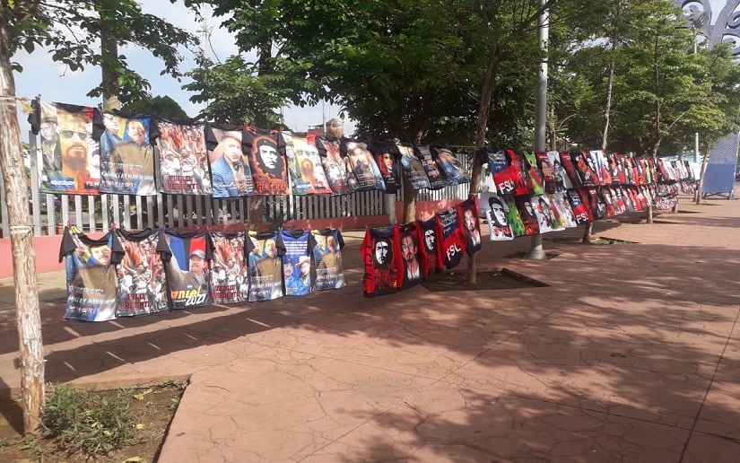 Estamos celebrando el mes de la revolución y en distintos puntos de Managua, negocios emprendedores ofrecen variedad de camisetas y accesorios alusivos al 40 aniversario de la Revolución Popular Sandinista.