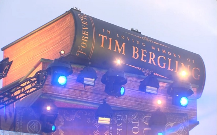 El año pasado fue puesto su nombre como “Tim Berling” en el puente de la entrada y se le llevo una bandera de su país con su imagen; ahora fue puesto su nombre en uno de los libros decorativos en el Mainstage.