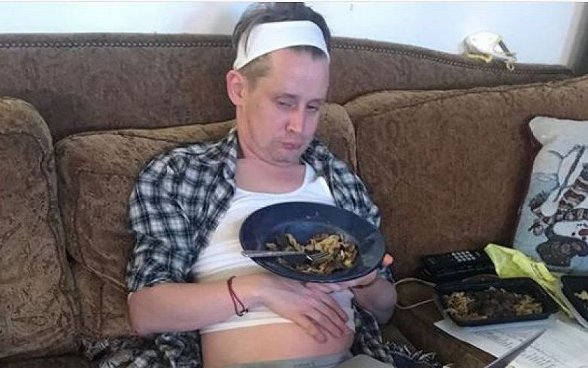 La imagen de Culkin, sentado en un sillón, con una laptop en sus piernas y un plato de comida en la mano, dio a entender que la vida no habría tratado tan bien a Kevin McCallister con el paso de los años.