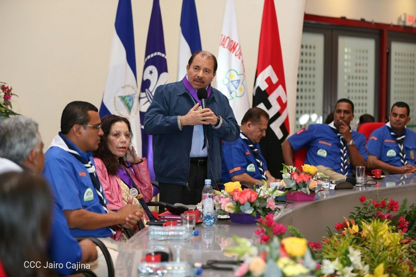 Vale apuntar que el Comandante Daniel Ortega es presidente de honorario de los scouts y antiguo scouts de Nicaragua. En este sentido, dos jóvenes scouts le otorgaron al Comandante Daniel la pañoleta conmemorativa de los cien años de este movimiento.